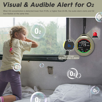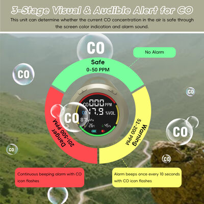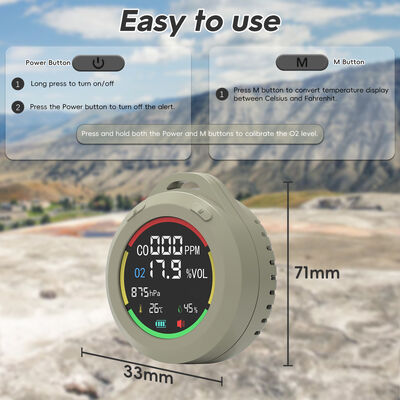 [Design 6-in-1 e portatile] Il rilevatore di monossido di carbonio per camper rileva in tempo reale co, o2, pressione atmosferica, altitudine, temperatura, umidità. Con dimensioni mini di 2,8 * 1,3 pollici, può essere facilmente riposto in tasca. Inoltre, ha un cordino da 7,8 pollici, può essere appeso e posizionato in piedi.